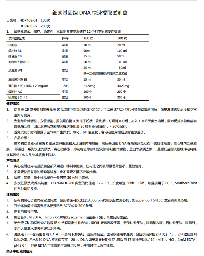 细菌基因组DNA提取试剂盒(溶液型)