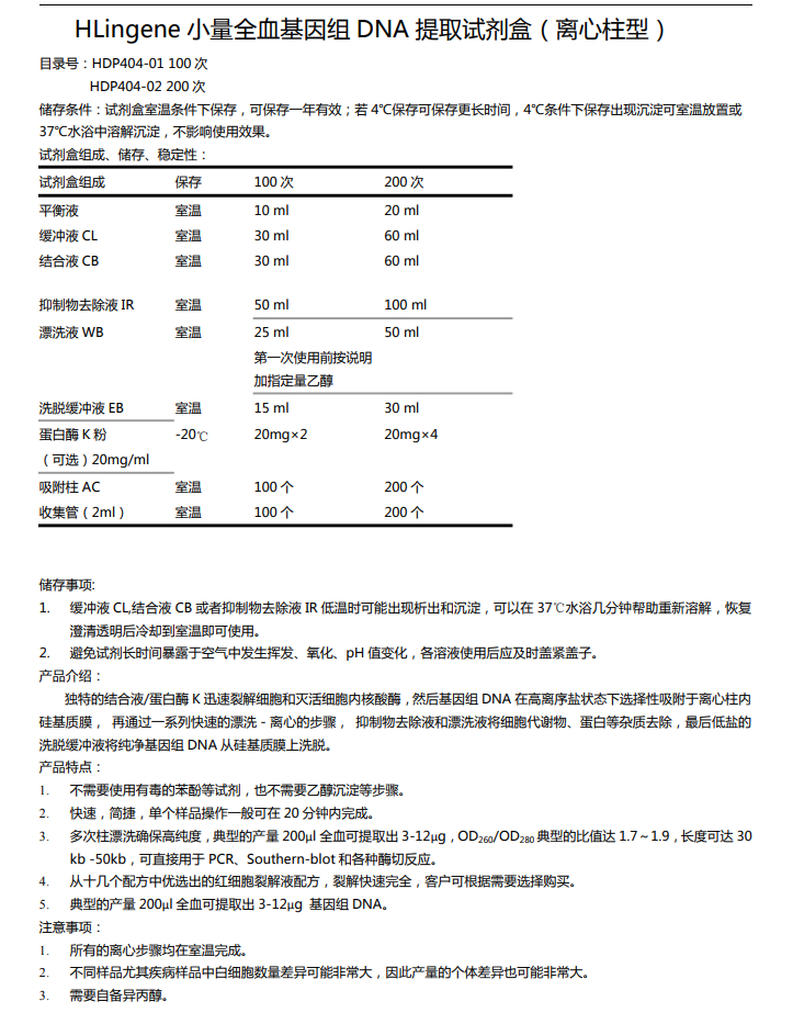 小量全血基因组DNA提取试剂盒(离心柱型)